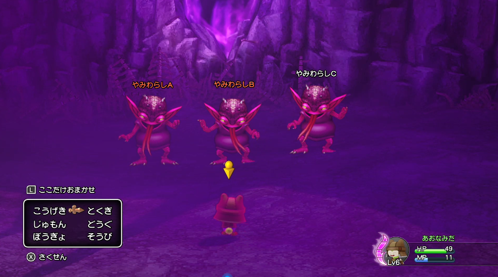 ▲污秽之谷(けがれの谷) --> 离开村子,前往东北方向的污秽之谷(けがれの谷)。 --> 在污秽之谷最深处进入BOSS战。(参考等级:Lv8) --> 击倒BOSS后,触发剧情。 注:BOSS睡眠抗性很低,如果玩家用的是短刀的话,可以先点出睡眠匕首,打BOSS会轻松很多。 ![]() 污秽之谷BOSS ![]() 开场动画 |