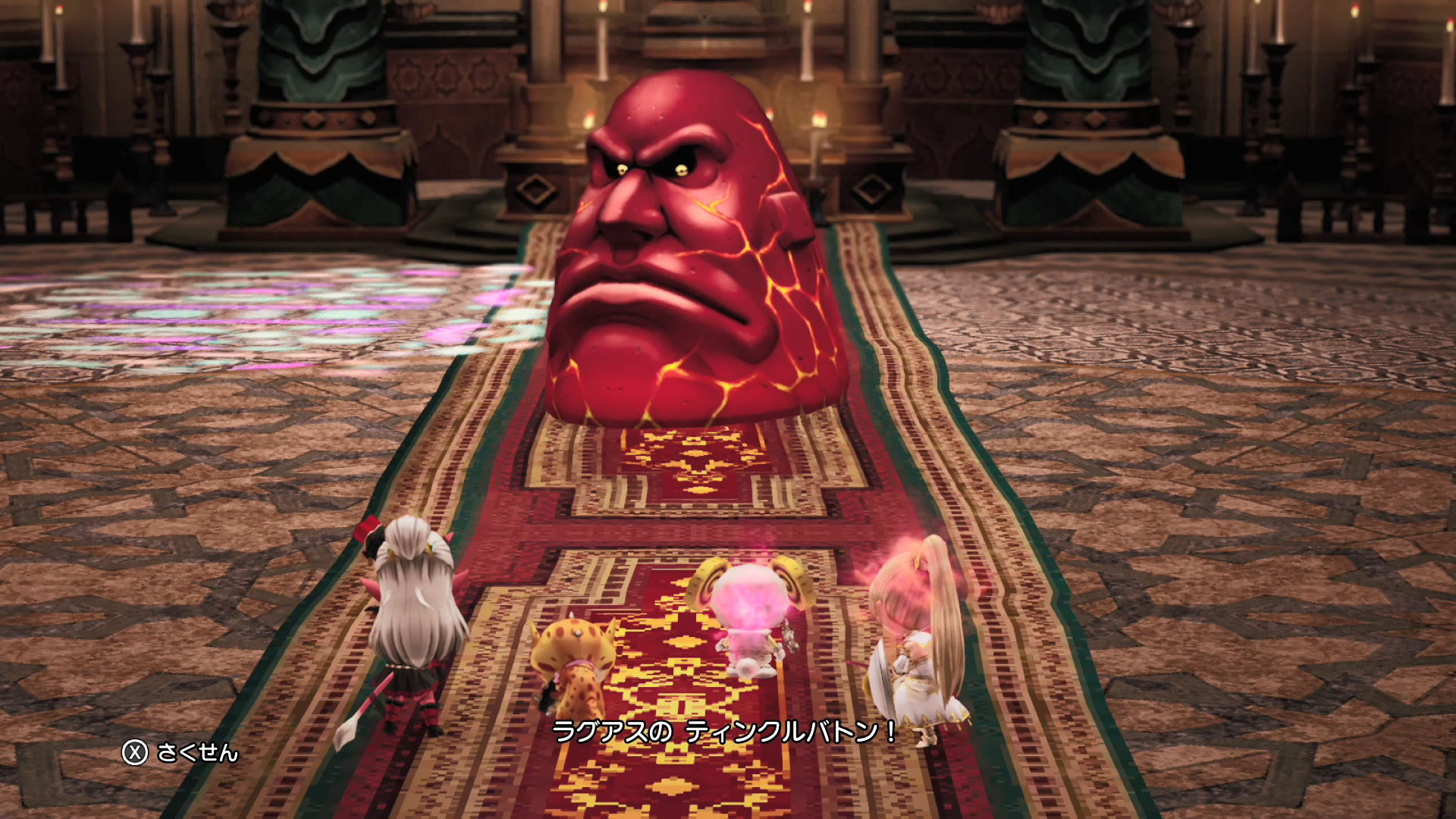支线No.275:闘志 接受条件:完成支线No.272 接受地点:真グランゼドーラ城的「秘密会議室」 (1)在真グランゼドーラ城的「秘密会議室」,调查黄色的椅子,接受任务。 (2)前往任意城镇的车站,乘坐火车,与賢者ホーロー碰面。注:乘坐火车的起点和终点任意,只要不是「???」即可。 (3)鲁拉前往「真のリンジャ塔」。如果没有登记过鲁拉石的话,路线如下:真のセレドの町→真のセレドット山道→真のリンジャハル海岸→真のリンジャの塔。 (4)登上塔的最顶层,进入「真の禁呪の祭壇」,触发剧情。 (5)试炼BOSS:「なげきの魔像」。注:战斗开始后,BOSS会给我方加上“无法造成伤害”的debuff,战斗一回合后,触发剧情,强制要求勇者公主编入队伍,在战斗中使用勇者公主的必杀技勇者之心,之后我方就可以对BOSS造成伤害了。 (6)战斗胜利后触发剧情,勇者公主学会「勇者の心」。 (7)返回真グランゼドーラ城的「秘密会議室」,触发剧情,完成任务。 ![]() 真のリンジャ塔 ![]() 试炼BOSS |