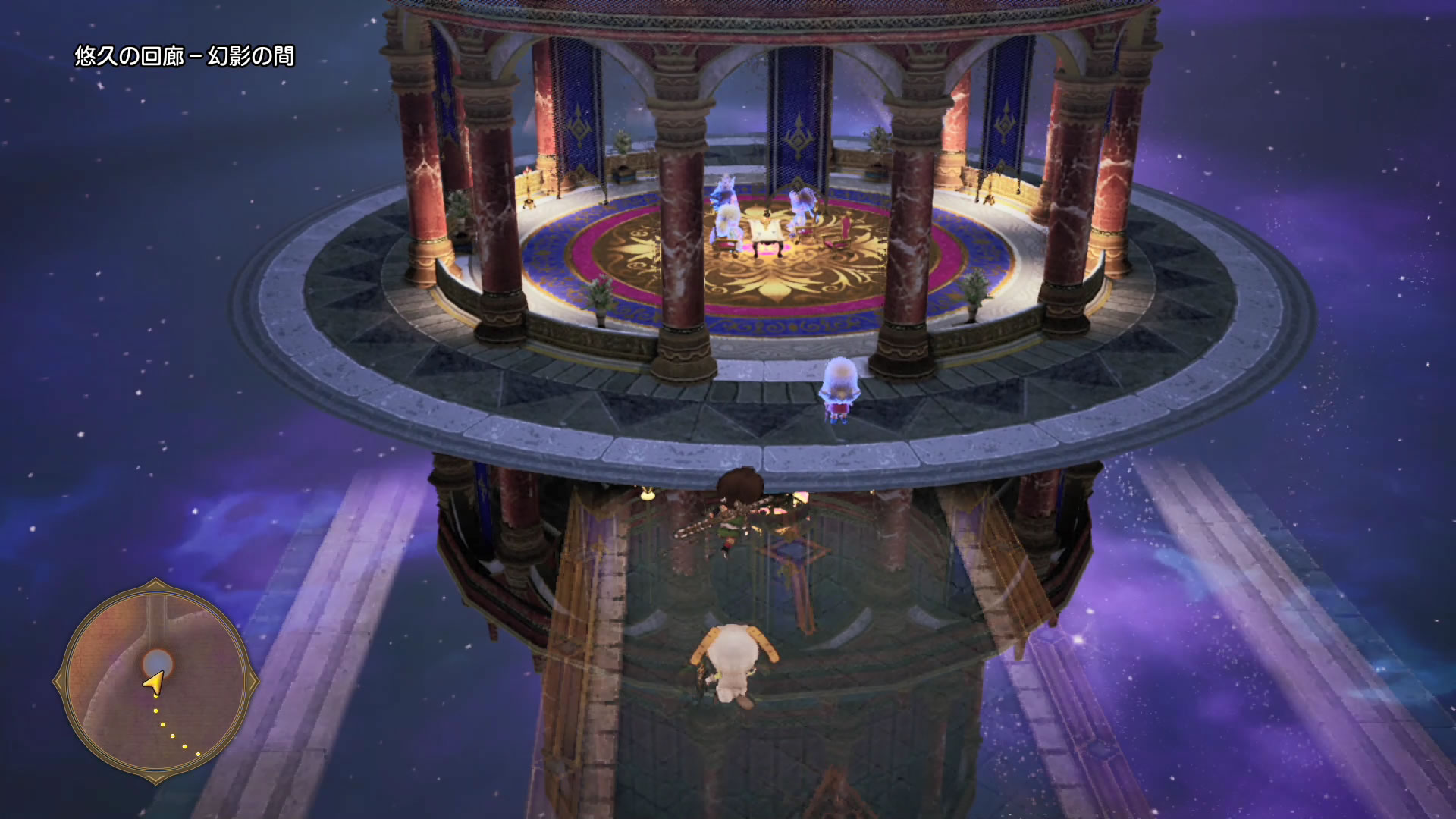 悠久的回廊 (1)往前走两步,进入正面的蓝光萦绕的门,触发剧情:被冥王毁灭前的伊甸村,主角老家。 (2)进入伊甸村西南的大房子,跟左手边房间里的アバ对话,选择“是”→“否”→“是”,返回悠久的回廊。 ![]() 调查蓝光萦绕的门,触发剧情 ![]() 跟アバ对话 --> F5:アンクルホーン×1、めいふのばんにん×2。两边的是小怪,中间的是小BOSS级别的血量很厚,建议先杀两边。 --> E4:ネクロバルサ、イエロバングル、グリンバングル。都是小怪。 (4)在C1处乘坐电梯,在电梯上会强制触发3场小怪战斗。①まおうのつかい;②じごくのよろい×2、ベホマスライム×2;③トロルキング×2。 (5)跟小怪们的战斗结束后,调查电梯中央的光点,抵达「享楽の間道」。 ![]() 这场战斗建议先杀两边的 ![]() 电梯上 (7)随便在老虎机上玩1把游戏,玩完之后跟出口处的キナ对话。选择“是”→“否”→“是”,返回享楽の間道。注:这里的老虎机可以随便玩,而且中奖率超高,然而这都是幻觉,带不回去的。 ![]() 老虎机 ![]() 出口处的キナ -->E5:ホロゴースト×1、ドルマージュ×4。 -->D4:ランプのまじん×1、デスケルトx2。 (9)继续往前,触碰蓝光萦绕的门,触发剧情:传送到勇者公主安露西亚的床边。 (10)醒来后,发现身处「謎の孤島」,跟栈桥边(D2)的安露西亚对话,选择“是”→“否”→“否”,回到享楽の間道。(注:跟女孩们一起生活真的太棒啦,真的不想返回现实。另外,如果玩家捏的主人公是女性的话,孤岛上会是其他的男性NPC) ![]() 孤岛的诱惑 ![]() 跟安露西亚对话返回现实 --> 1回战:キマイラロード×1、サイコマスター×2、マジックアーマー×2。 --> 2回战:メカバーン×1。 --> 3回战:ゲルバトロス×2、なげきの亡霊×1。 --> 4回战:おにこんぼう×1。 (12)继续前进,通过传送门抵达「幻影の間」。 |