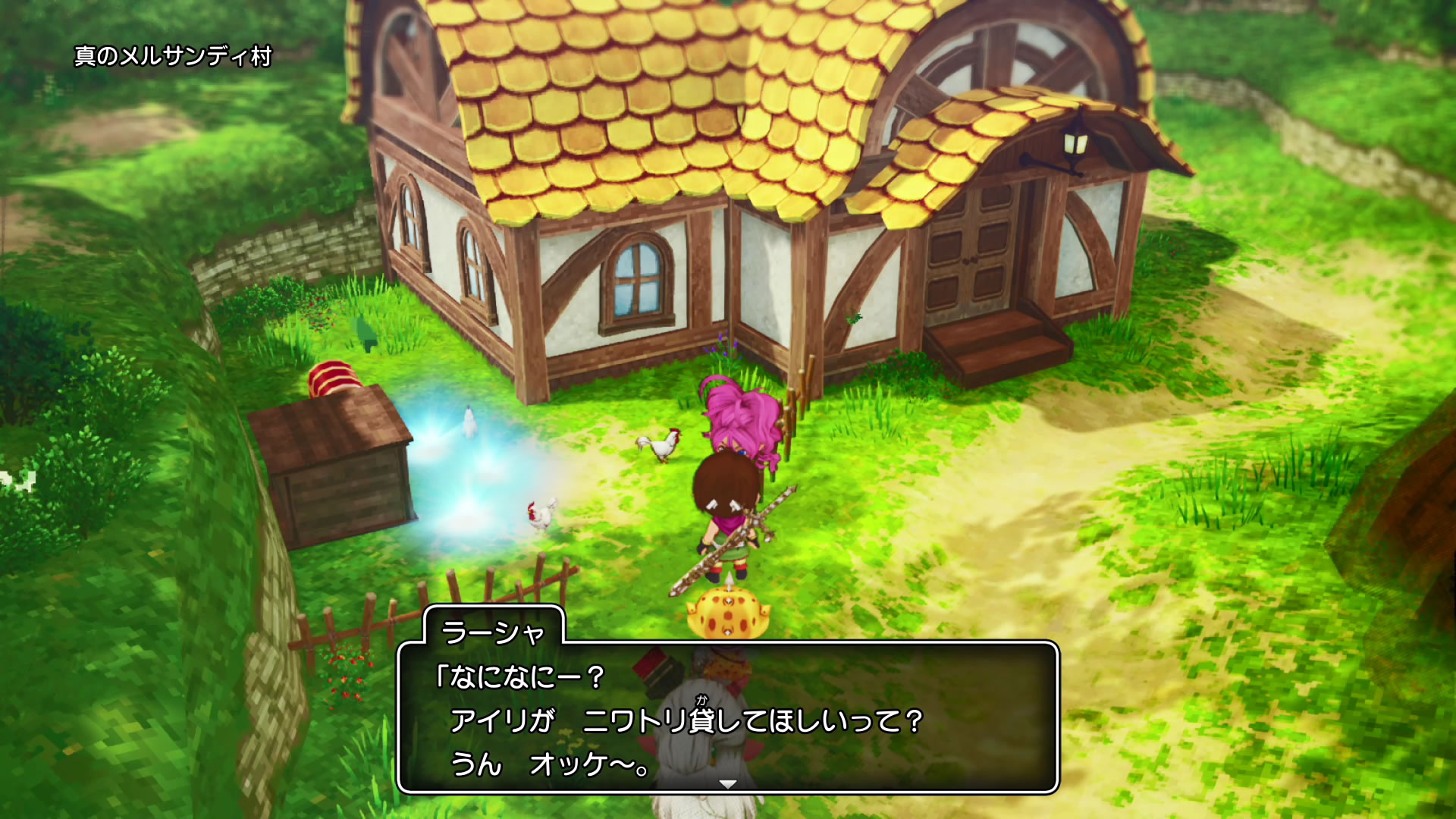 支线No.229:魔女とニワトリ 接受条件:完成支线No.228后 接受地点:真メルサンディ村的「童話作家の家」 (1)在童话作家的家2楼房间内,跟小女孩アイリ对话,接受任务。 (2)离开童话作家的家,出门左转,跟养鸡的小女孩ラーシャ对话。 (3)离开村庄,穿过「真メルサンディ穀倉帯」,往南前往「真ローヌ樹林帯」,前往地图中央的「黄葉商店」。(建议顺路去解锁一下真的魔女之森的鲁拉石) (4)在「黄葉商店」,跟宿屋左边的ピヨピヨ对话,支付1414G,购买任务道具ピヨピヨ豆。 (5)返回真メルサンディ村,跟养鸡小女孩ラーシャ对话,交付任务道具,得到鸡和1414G。 (6)前往真こもれびの広場,触发剧情。 (7)返回童话作家的家2楼,跟小女孩アイリ汇报,完成任务。 ![]() 养鸡的小女孩 ![]() 黄叶商店的卖豆商人 |