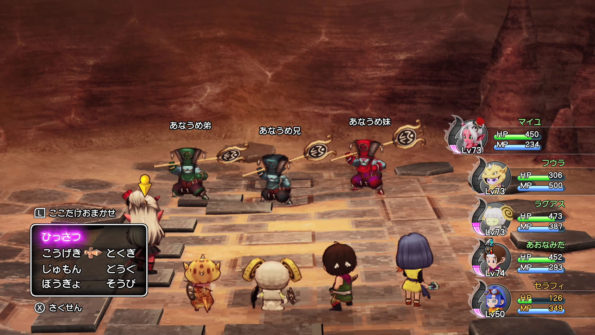 支线No.240:家族のもとへ 接受条件:完成支线No.239后 接受地点:真アラハギーロ王国,王座之间 (1)前往真アラハギーロ王国的王座之间,跟ムーニス王接受任务。 (2)前往伪アラハギーロ王国,跟城门口附近的胖大婶クイーラ对话。 (3)前往伪ムルード岩山(可鲁拉)。 (4)走到伪ムルード岩山的深处,遇到塞拉菲和白色杀人豹,触发剧情。 (5)来到「偽アラハギーロ地方」右边的G4处,有一个沙坑,掉进去,可以进入「偽ナシームの洞くつ」。注:附近有很多个沙坑,如果进错了可以从南边回到地表,再掉入其他的坑。 (6)前往洞窟中的「偽りの忘れられた広間」。 (7)BOSS战:「あなうめ3兄弟」。注:BOSS会在脚下挖洞,在挖洞的状态下,玩家使用近距离攻击技能的话会掉入坑中,暂时无法行动。 (8)战斗胜利后触发剧情,从塞拉菲处得到一封信(セラフィの手紙)。 (9)返回真アラハギーロ王国的王座之间,触发剧情,完成任务。 ![]() G4的沙坑,从这里掉进去 ![]() BOSS战:「あなうめ3兄弟」 |